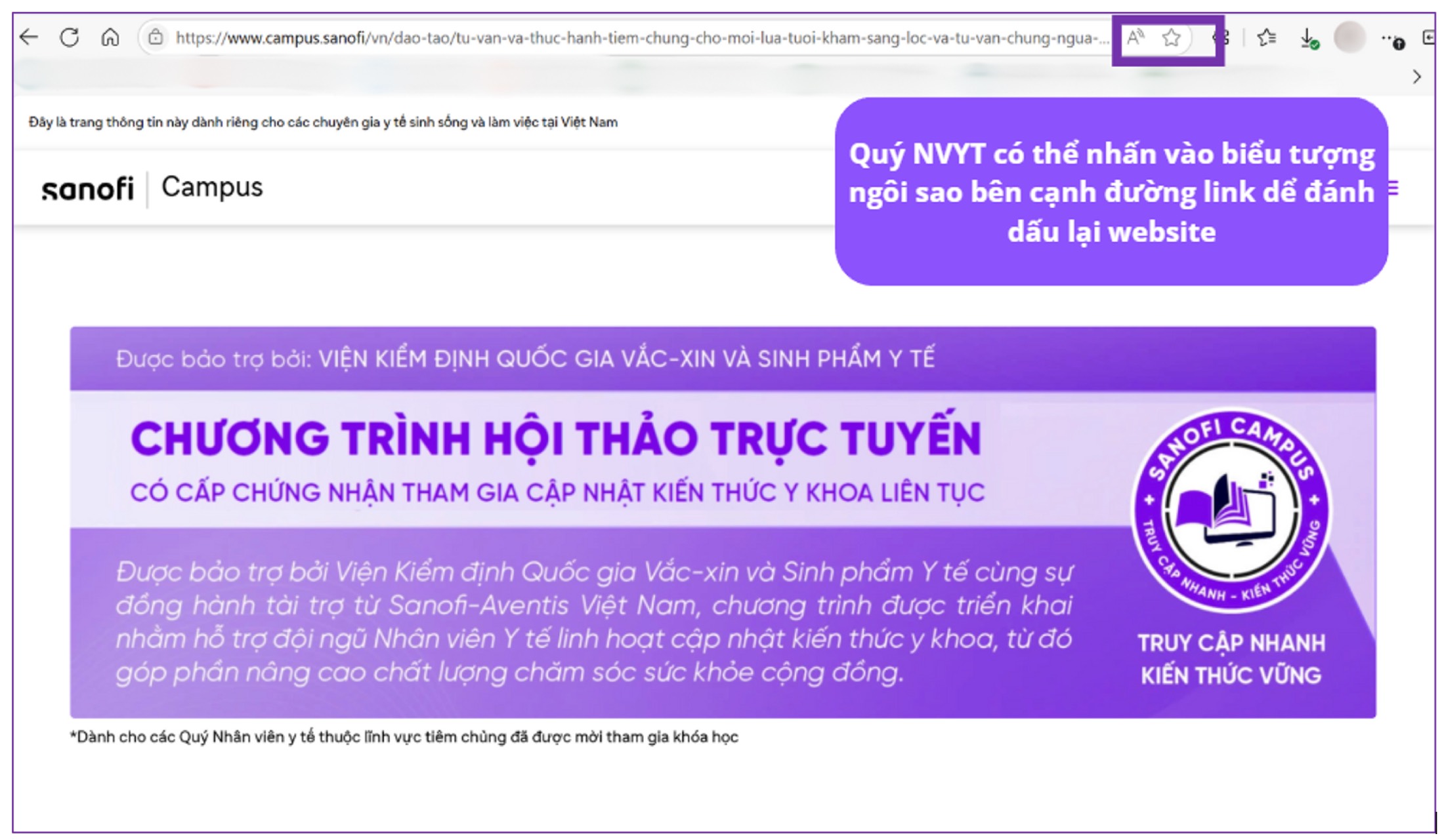 - Bước 1: Đầu tiên, Quý Nhân viên Y tế có thể đăng nhập vào trang Sanofi Campus theo hướng dẫn ở Mục 1.