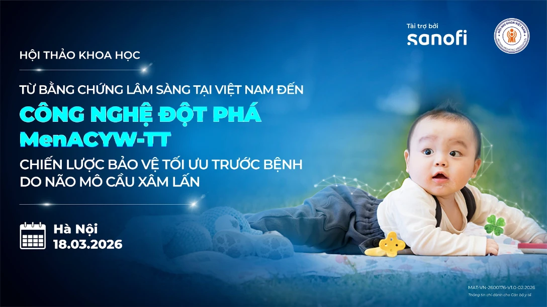 Hội Nhi khoa Việt Nam và Công ty TNHH Sanofi-Aventis xin chân thành cảm ơn Quý Cán bộ Y tế đã dành thời gian tham dự buổi Hội thảo khoa học “TỪ BẰNG CHỨNG LÂM SÀNG TẠI VIỆT NAM ĐẾN CÔNG NGHỆ ĐỘT PHÁ MENACYW-TT: CHIẾN LƯỢC BẢO VỆ TỐI ƯU TRƯỚC BỆNH DO NÃO MÔ CẦU XÂM LẤN” diễn ra từ 18:30 đến 20:30 ngày 18/03/2026.