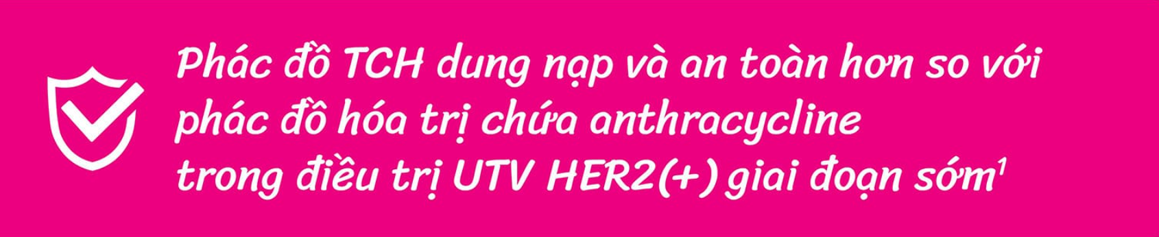 Bệnh nhân UTV HER2(+) được rút ngắn thời gian hoàn thành phác đồ hoá trị bổ trợ khi sử dụng phác đồ TCH với số lần cần đi khám bệnh để truyền thuốc ít hơn, đồng thời hoàn thành điều trị bổ trợ trastuzumab sớm hơn 12 tuần so với phác đồ AC-TH.