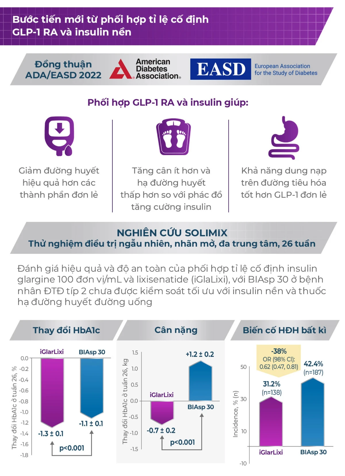Việc thay đổi từ sử dụng insulin nền đơn trị sang insulin trộn sẵn có thể giúp kiểm soát đường huyết ở bệnh nhân Đái tháo đường típ 2. Tuy nhiên việc này có thể dẫn tới các kết cục không mong muốn, bệnh nhân phải tiêm nhiều lần/ngày, ảnh hưởng không tốt đến việc tuân thủ điều trị của bệnh nhân. Sử dụng phối hợp tỉ lệ cố định đồng vận thụ thể GPL-1 và insulin nền có thể giúp bệnh nhân tránh được các bất lợi kể trên