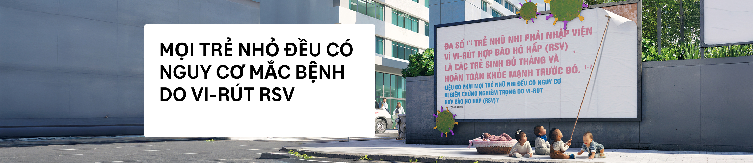 Nếu trẻ có thể cất lời, các bé sẽ nói rằng mình đang đối mặt với nguy cơ từ vi-rút hợp bào hô hấp (RSV) – một trong những nguyên nhân hàng đầu gây nhập viện ở trẻ nhỏ, dù có những ca bệnh chỉ biểu hiện nhẹ.†, 1, 14, 15, 17